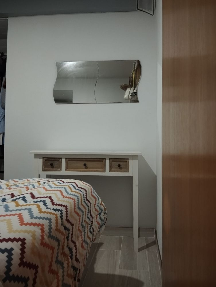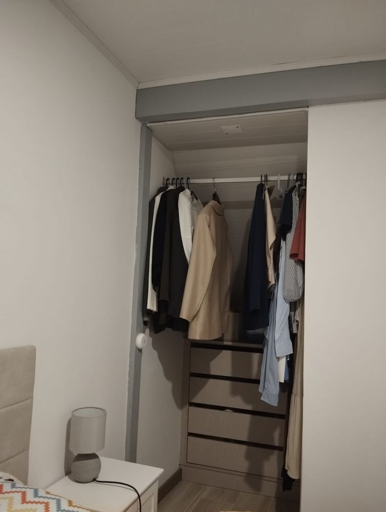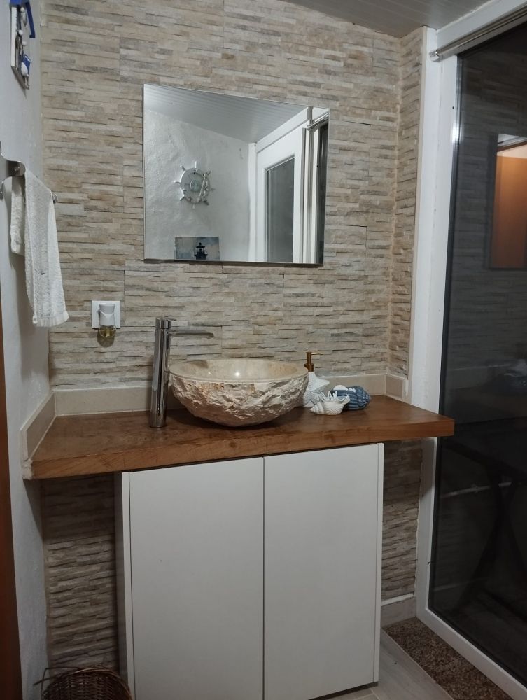O apartamento encontra-se no R/Chão de uma moradia, e é constituído por 1 quarto, um WC com base de duche e uma cozinha.